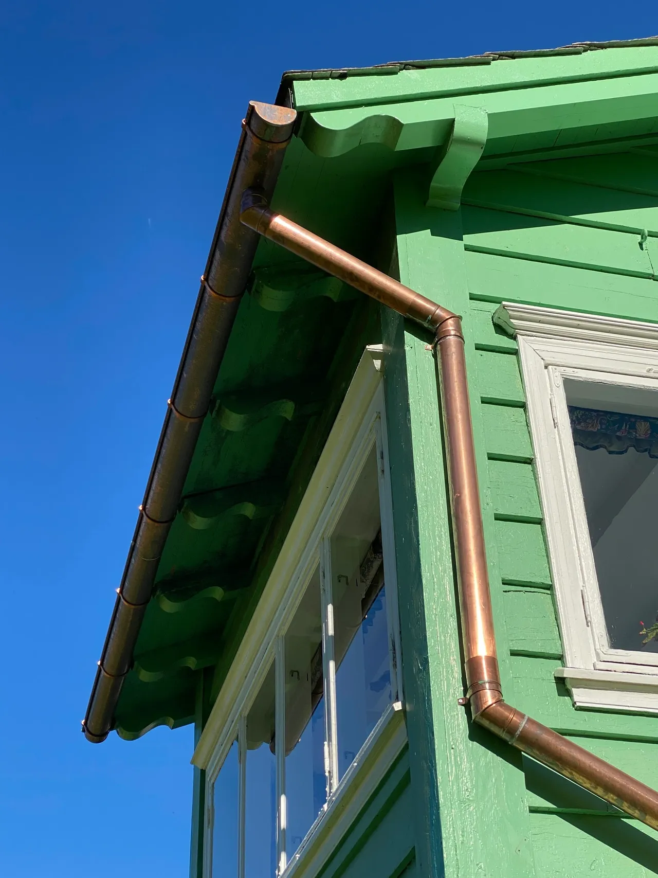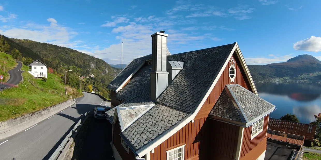 Singerheimen i Olden er et unikt og vernet bygg, hvor vi har utført arbeid på takrenner, nedløp, beslag, pipetopper samt båndtekking i kobber og sink.