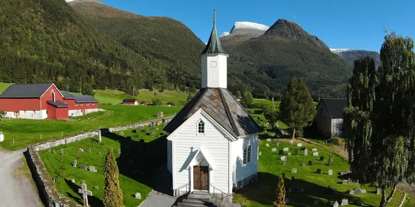 På Loen kyrkje har vi utført beslagsarbeid på taket, samt reparert kobberet på spiret.
