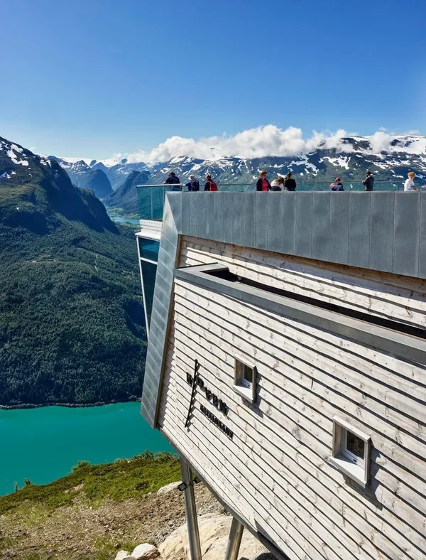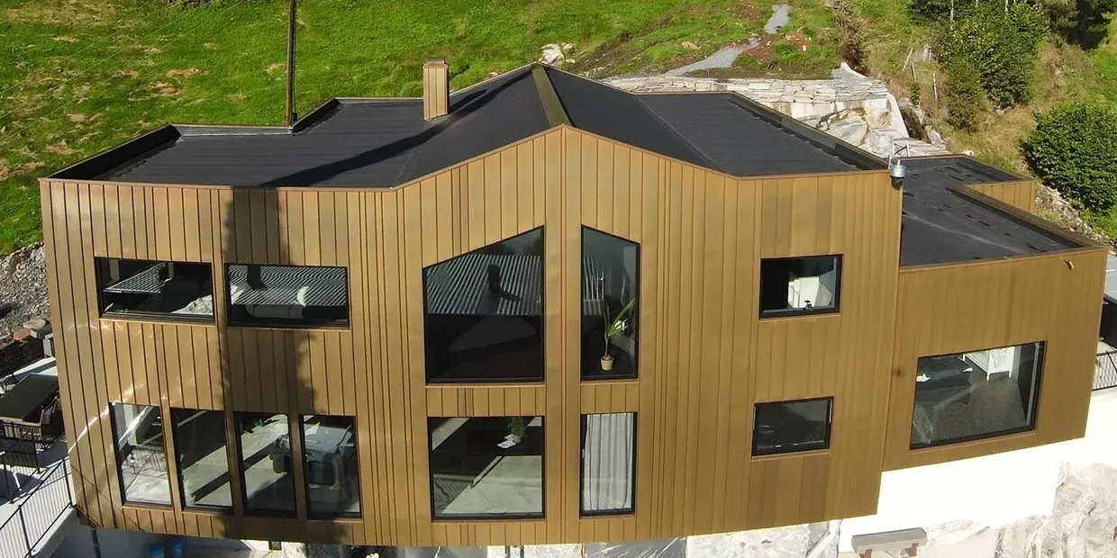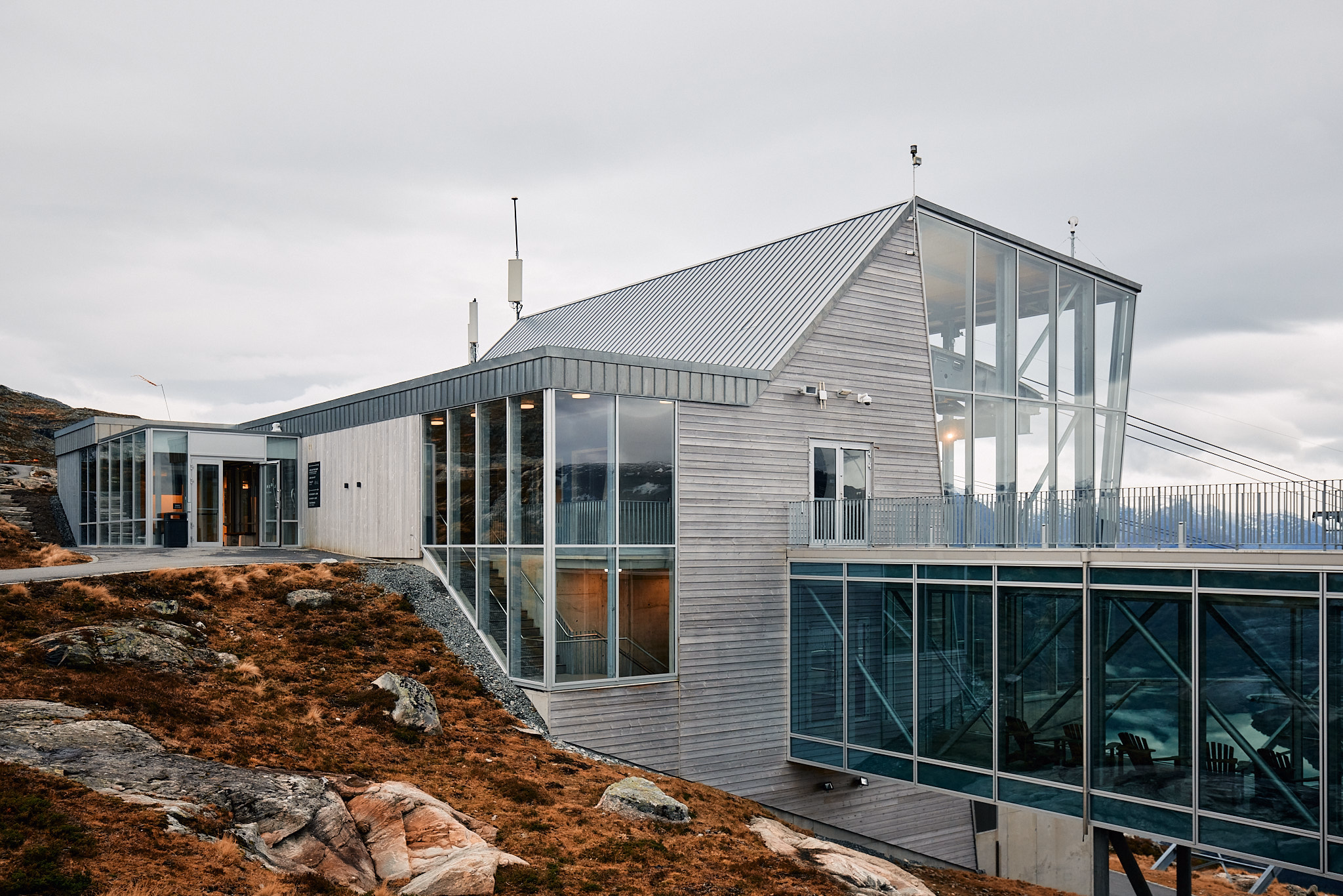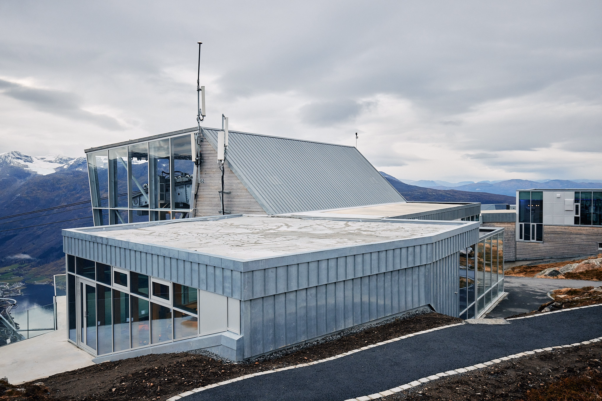 På Loen Skylift har vi båndtekka både tak og fasade på deler av flere bygg ved fjorden og ved toppstasjonen på Hoven. Her er det brukt naturmaterialet sink, som over tid får et unikt og vakkert uttrykk når det utsettes for naturkreftene.